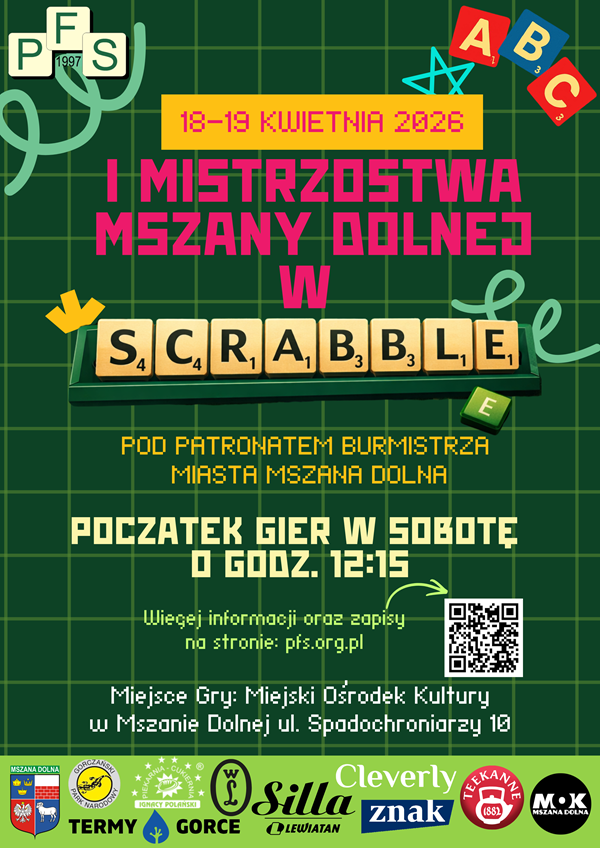 I Mistrzostwa Mszany Dolnej w ScrabbleMszana Dolna, 18 - 19 kwietnia 2026